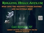 Rolling Hills Asylum East Bethany, NY Open Friday 11/9, Saturday 11/10, Sunday 11/11 and 11 other dates Wander the halls of the Rolling Hills Asylum, where thrill seekers can explore a truly haunted location that has some seriously spooky ghost stories surrounding it! |
